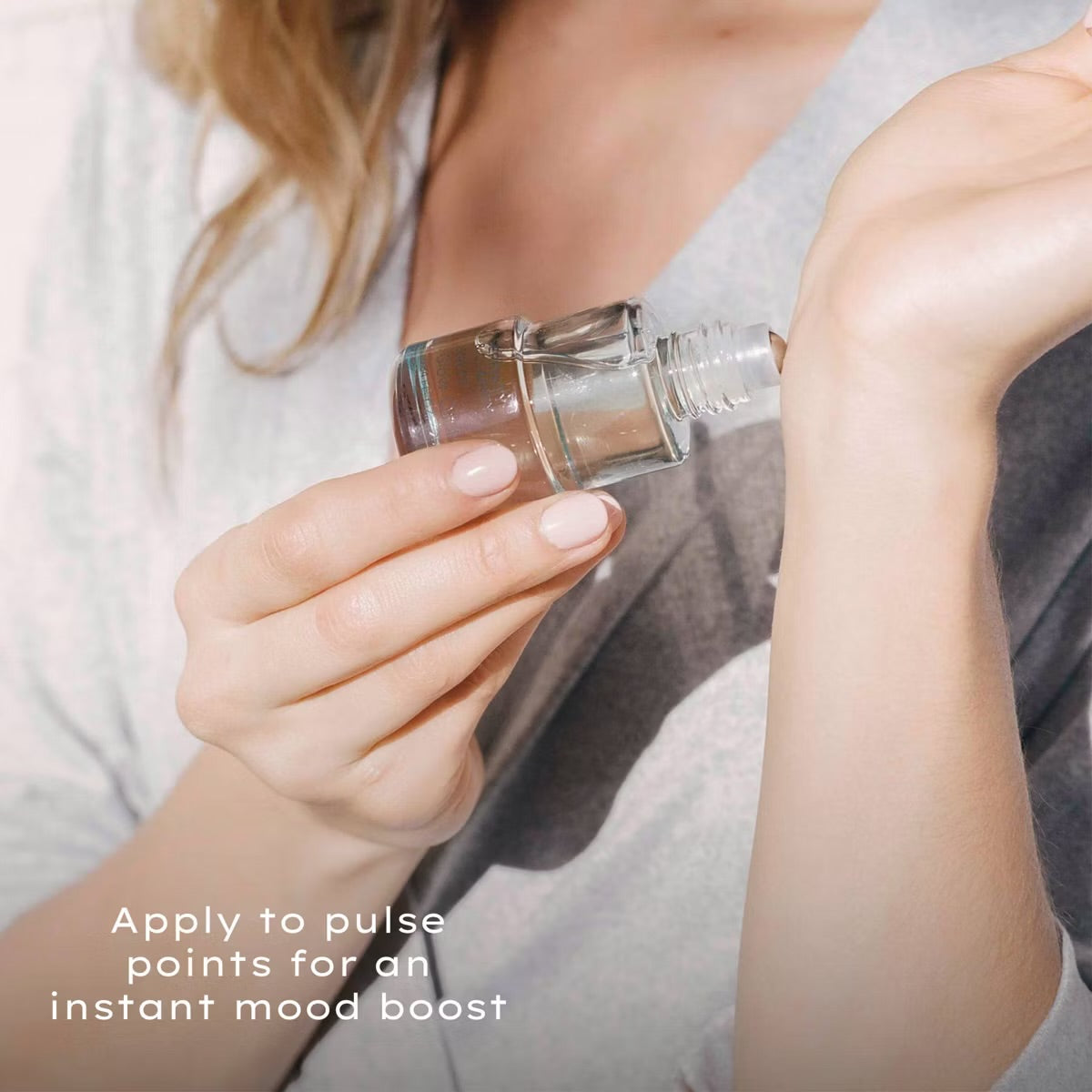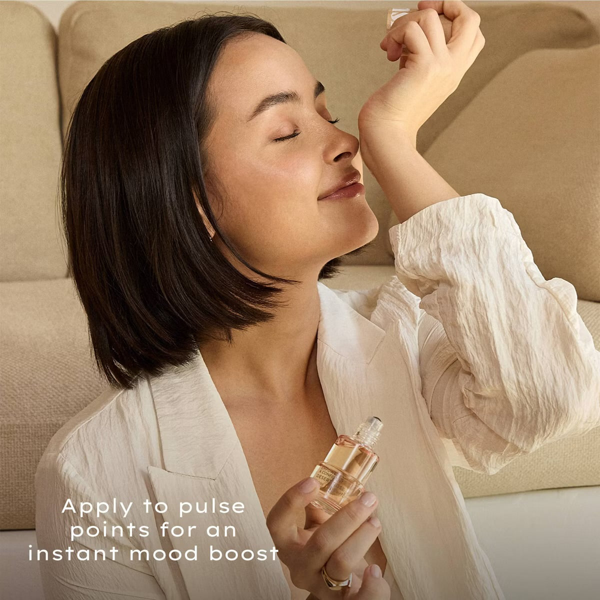 Roll gently onto pulse points — wrists, neck, and décolletage — to activate scent and center your mood. Reapply as needed throughout the day for an instant wellness reset.