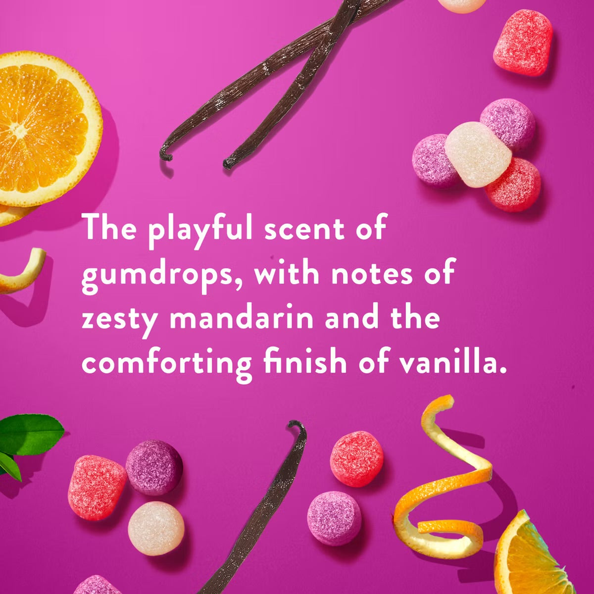 A festive sugar rush in shower form. Gum Drop blends juicy mandarin, bright peony petals, and a warm vanilla finish — a scent that feels like rummaging through a bowl of colourful holiday sweets. Playful, sweet, and joyfully nostalgic.