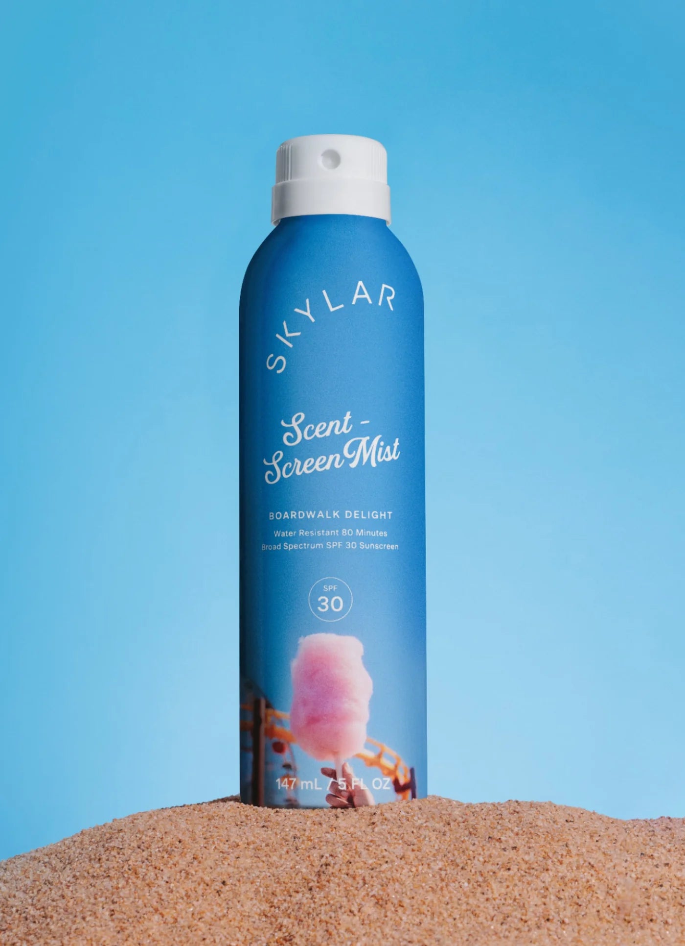 Meet Skylar Scent-Screen, the SPF 30 body mist that smells like pure summer nostalgia. Lightweight, hydrating, and delightfully scented, this clean sunscreen doubles as your daily skin ritual — protecting while leaving behind the signature sweetness of Boardwalk Delight.