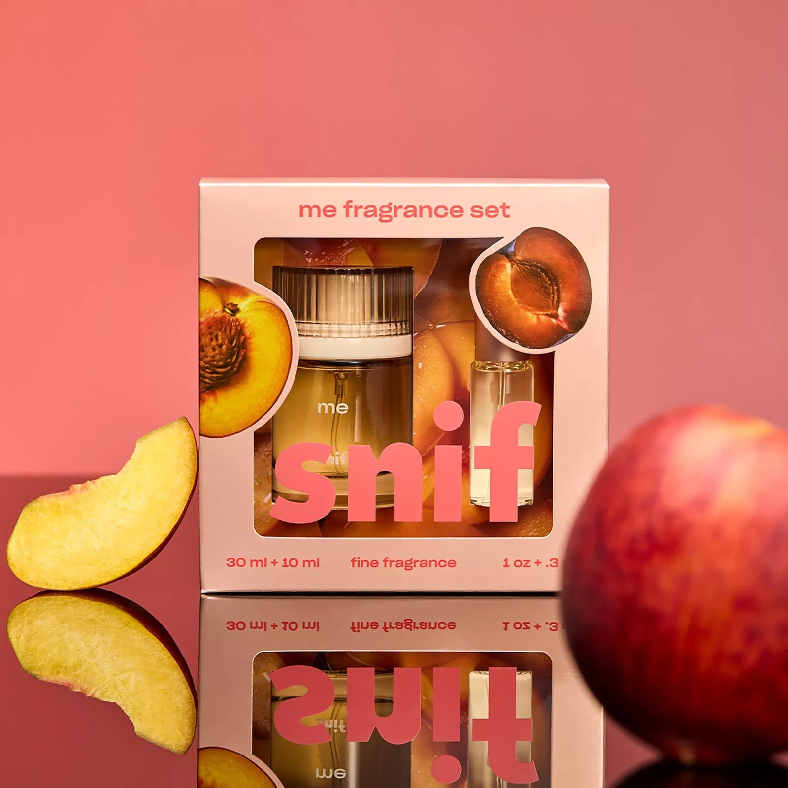 A duo of Snif’s viral “your-skin-but-better” scent — soft, fruity, and irresistibly clean. Includes a full-size bottle and a mini for on-the-go glow.