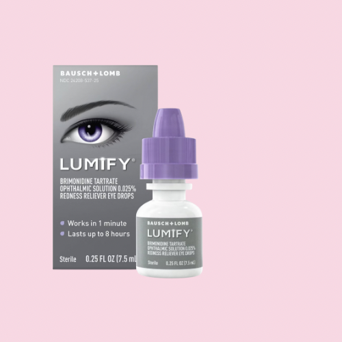 Developed by the experts at Bausch + Lomb, the LUMIFY Redness Reliever Eye Drops are clinically proven to reduce redness and restore your eyes’ natural radiance. Unlike typical OTC eye drops, LUMIFY uses a low-dose brimonidine tartrate formulation that works differently by selectively targeting redness — without the harsh bleaching agents or dyes.